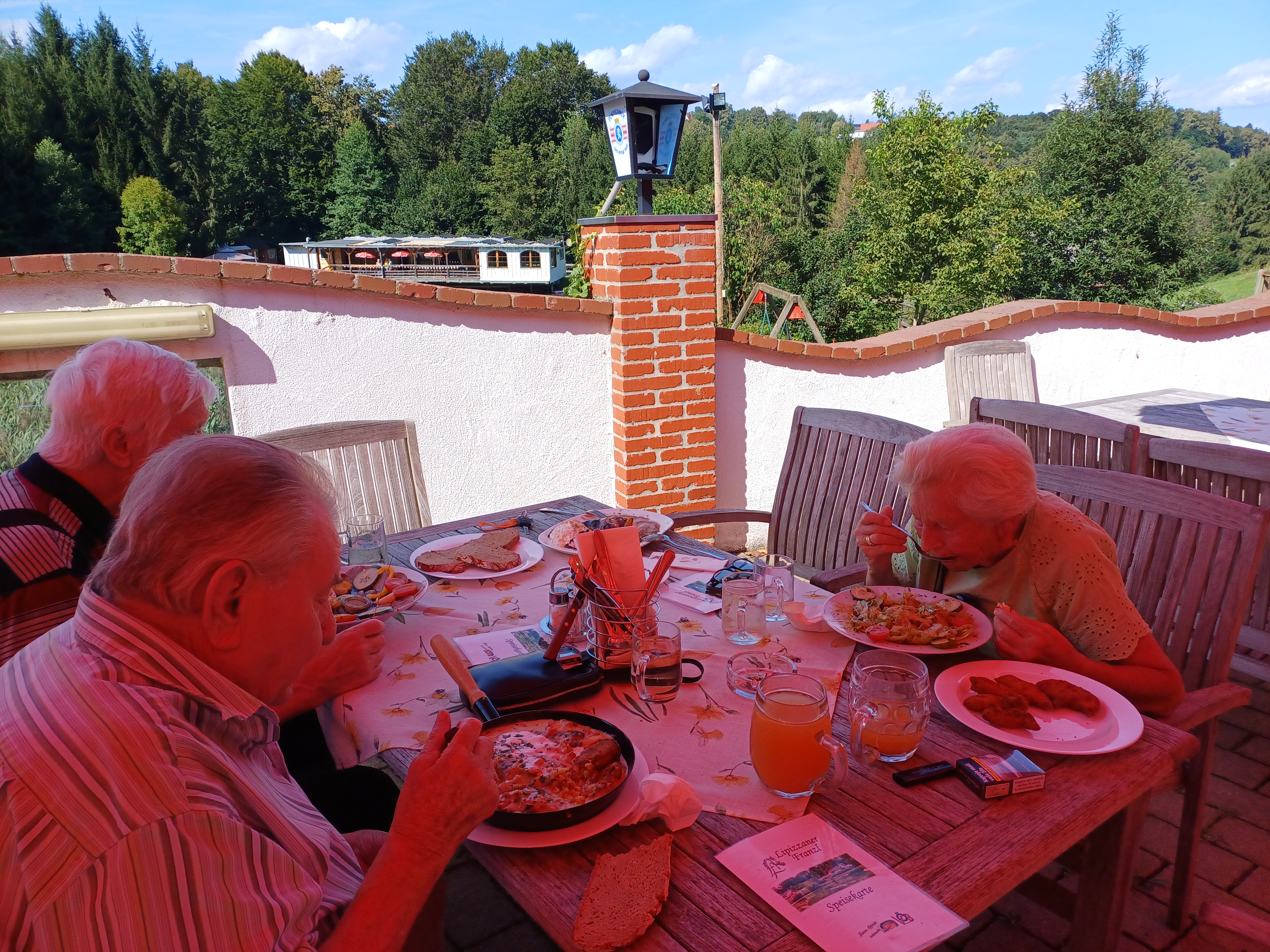 Im SeneCura Sozialzentrum Vasoldsberg konnte im Rahmen der Herzenswunsch-Aktion ein besonderes Anliegen erfüllt werden. Drei befreundete Bewohner:innen des Hauses, Kreindl Josefine, Kraxner Franz und Leopold Anton, machten sich in Begleitung der Kollegin Meglitsch gemeinsam auf den Weg zum Lipizzaner Franzl. Das Lipizzaner Franzl ist ein Gasthaus in Heiligenkreuz am Waasen. Dort genossen die Seniorinnen und Senioren nicht nur die idyllische Umgebung, sondern ließen sich auch kulinarisch so richtig verwöhnen. Die drei Freunde waren begeistert von diesem tollen Tag voller guter Gespräche, leckerem Essen und besonderer Momente. Mit einem breiten Lächeln im Gesicht kehrten die drei Bewohner:innen zurück ins Sozialzentrum und erzählten fleißig von ihren Erlebnissen.