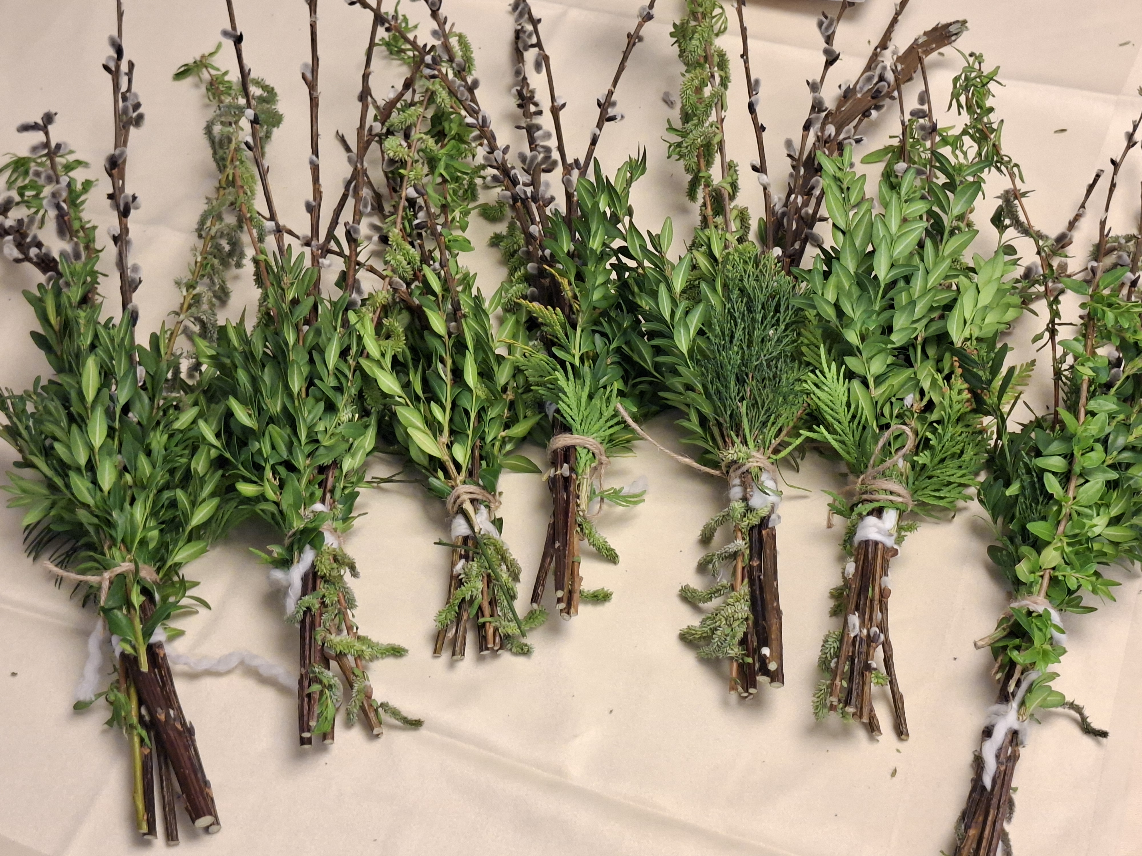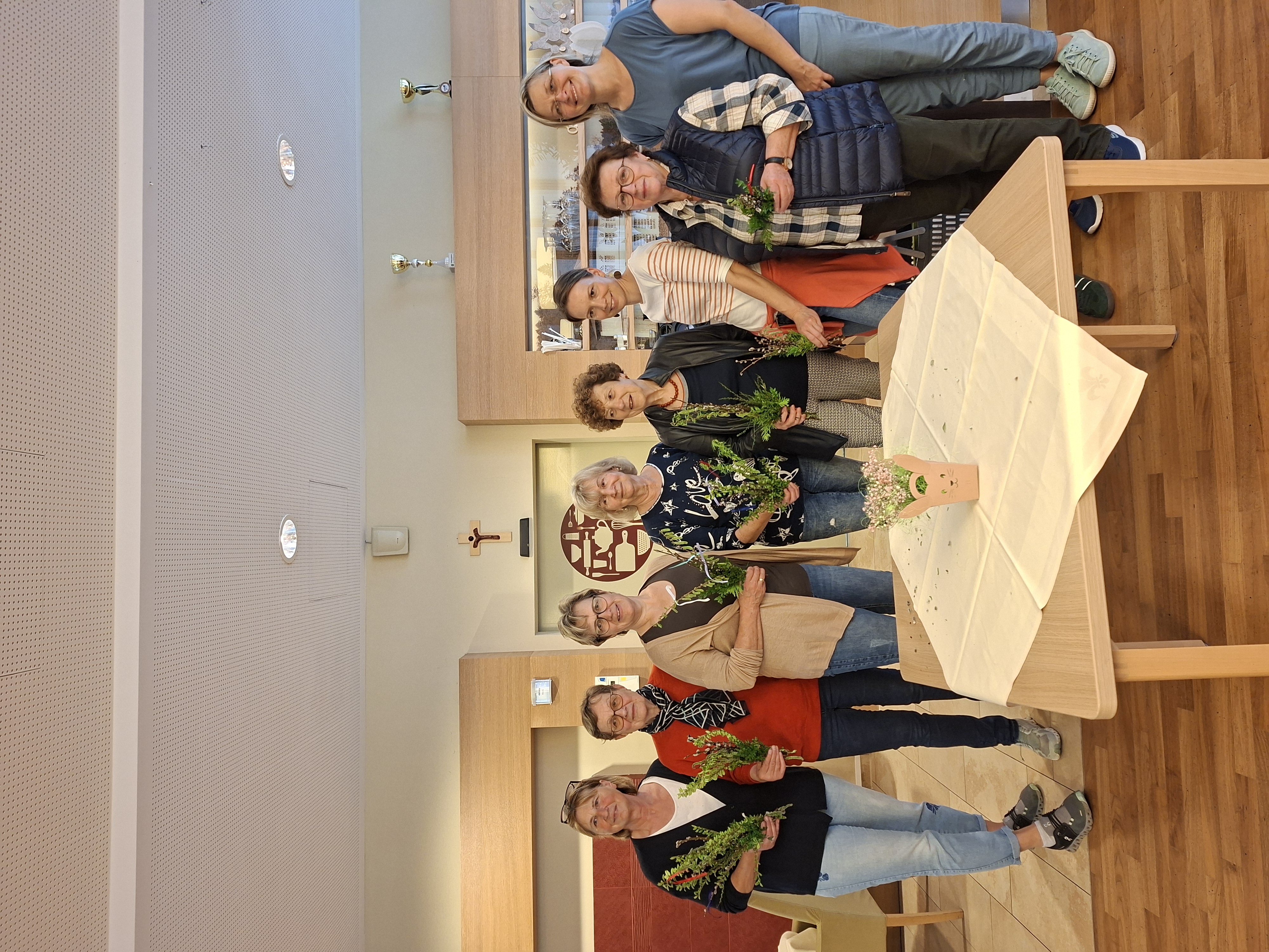 Die Bewohnerinnen und Bewohner des SeneCura Sozialzentrums Vasoldsberg haben gemeinsam mit den Jungbäuerinnen aus der Umgebung Palmbuschen gebunden. Es ist eine schöne Gelegenheit, Traditionen lebendig zu halten. Nachdem die Palmbuschen fertig gebunden waren, wurden sie in einem feierlichen Wortgottesdienst gesegnet und mit bunten Bändern verziert. Für die Senior:innen ist der Erhalt der Tradition sichtlich wichtig und das gemeinsame Binden machte ihnen große Freude.