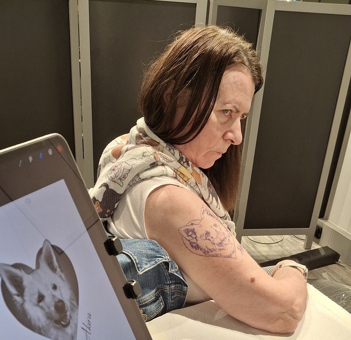 Nachdem in ihr die Idee und der Wunsch entstanden ist, ihre Hündin mittels eines Tattoos zu verewigen, hat sie unsere Seniorenbetreuerin Manuela Walter eingeweiht, die dann alles, ohne ihre Familienmitglieder zu informieren, organisiert hat. Letzte Woche war es dann soweit und die beiden fuhren nach Graz ins Tattoo-Studio. „Es hat 3 Stunden gedauert und gar nicht weh getan.“ Die Mitarbeiterinnen und Mitarbeiter unseres Hauses finden Frau Schönmetzler und ihr Tattoo „echt cool“. Frau Schönmetzler ist sehr glücklich darüber, diesen Schritt getan zu haben. „Nun brauche ich ein neues Outfit, damit man mein Tattoo auch gut sehen kann!“, sagt sie mit einem verschmitzten Lächeln im Gesicht.